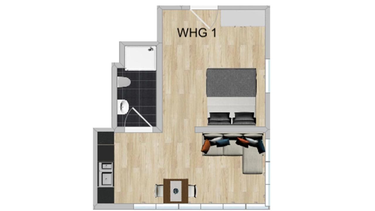 Die Wohnung überzeugt mit einem modernen, gemütlichen Ambiente. Der Parkettboden sorgt für eine warme Atmosphäre, während das helle Wohnzimmer mit Sofaecke und Esstisch zum Entspannen einlädt. In der voll ausgestatteten Kochnische findest du alles, was du brauchst: Herd, Kühlschrank, Mikrowelle, Geschirrspüler und Kaffeemaschine – ideal für kulinarische Highlights. Falls nötig, kannst du in der Gemeinschaftswaschküche eine Waschmaschine und einen Trockner nutzen.