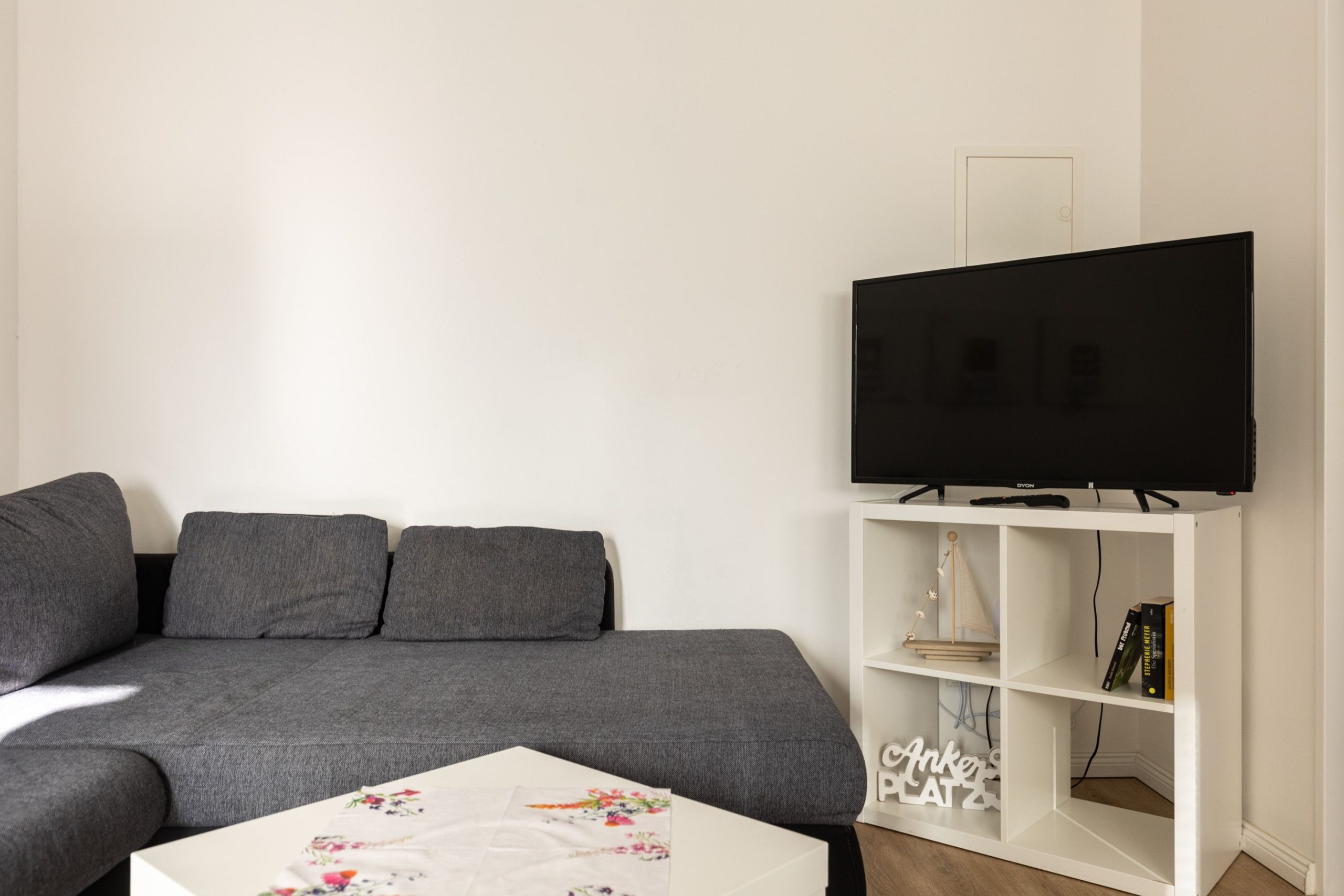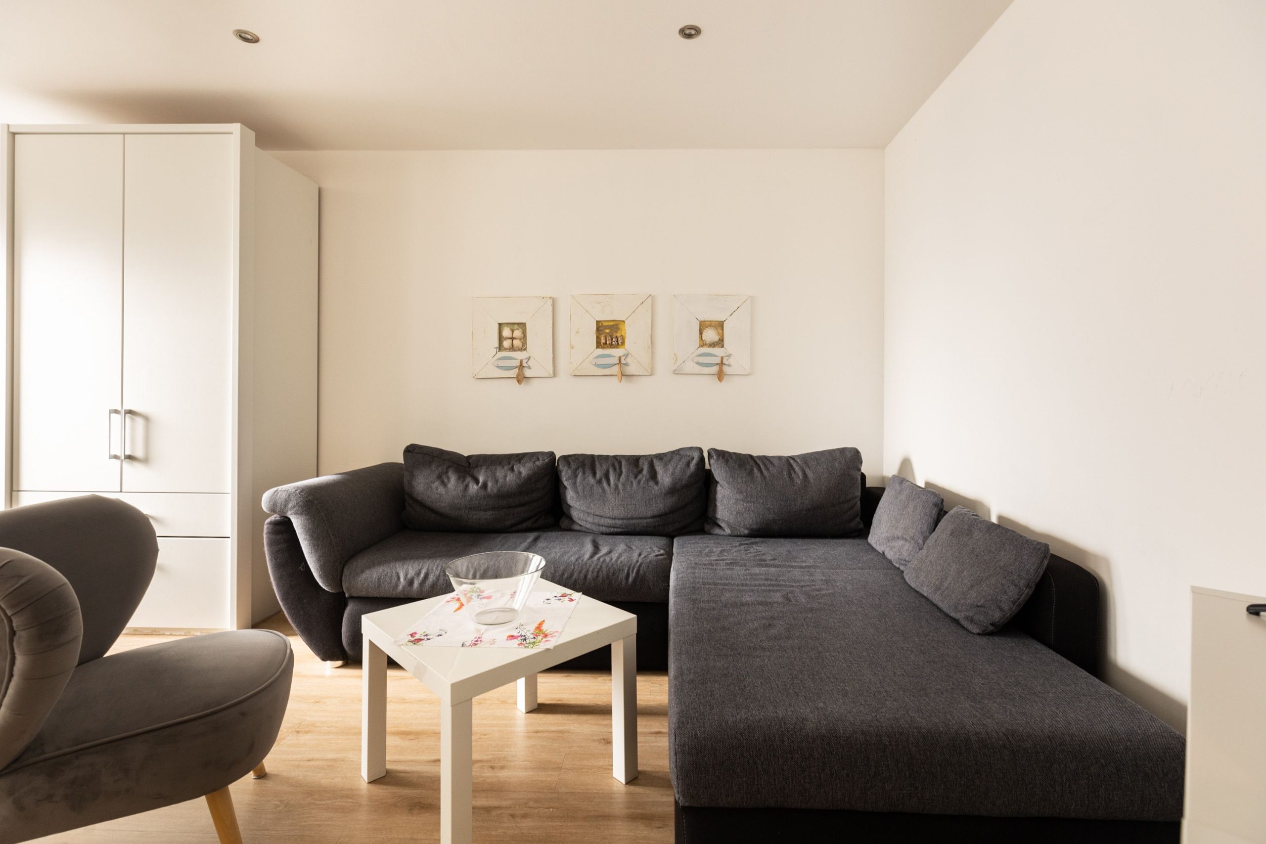 Die Wohnung verfügt über ein gemütliches Schlafzimmer für erholsame Nächte und ein einladendes Wohnzimmer mit Sofaecke und Essbereich – perfekt für gemeinsame Stunden. Die geschmackvolle Einrichtung sorgt für eine angenehme Atmosphäre.