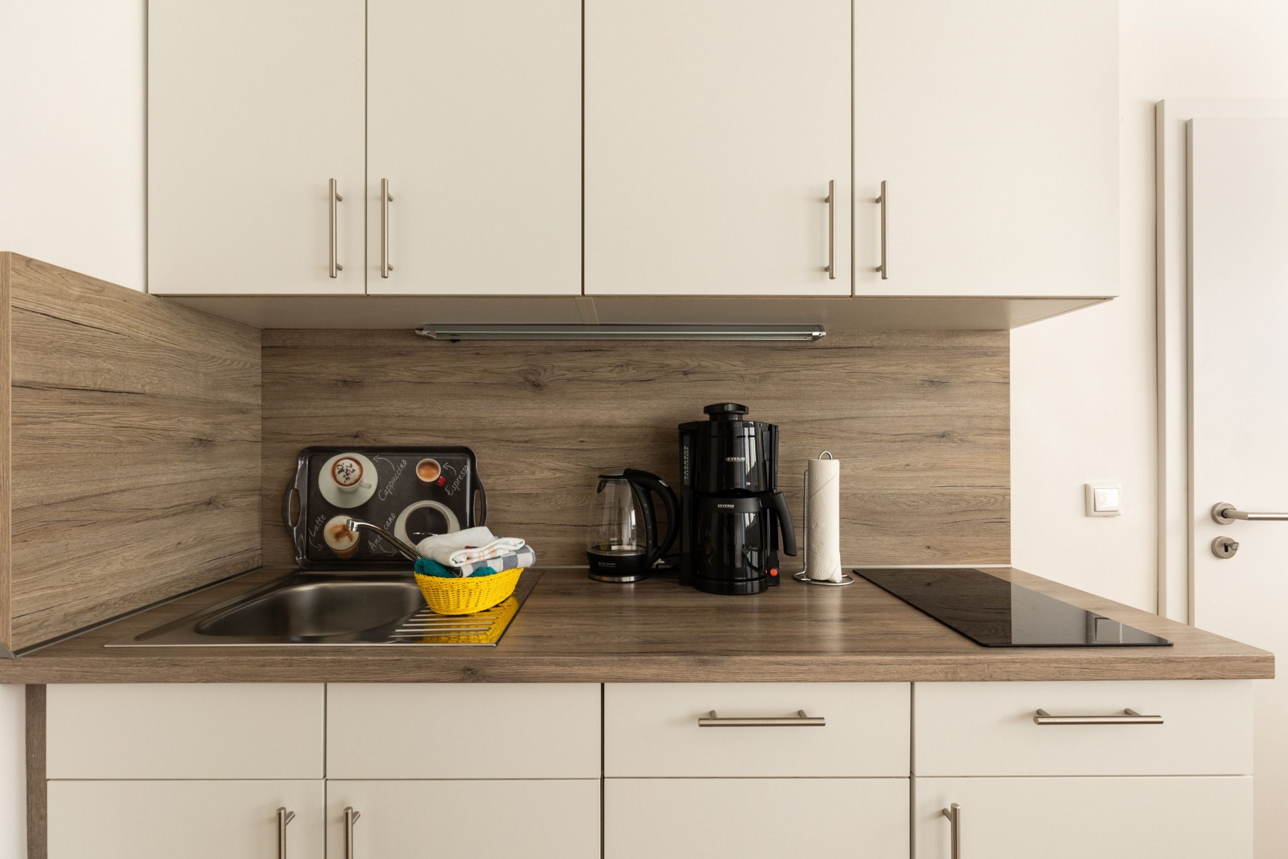 In der voll ausgestatteten Kochnische findest du ein Cerankochfeld, eine Spülmaschine, eine Mikrowelle, einen Kühlschrank und eine Kaffeemaschine – ideal für alles vom schnellen Frühstück bis zum selbstgekochten Abendessen. Geschirr und Besteck sind natürlich vorhanden.
