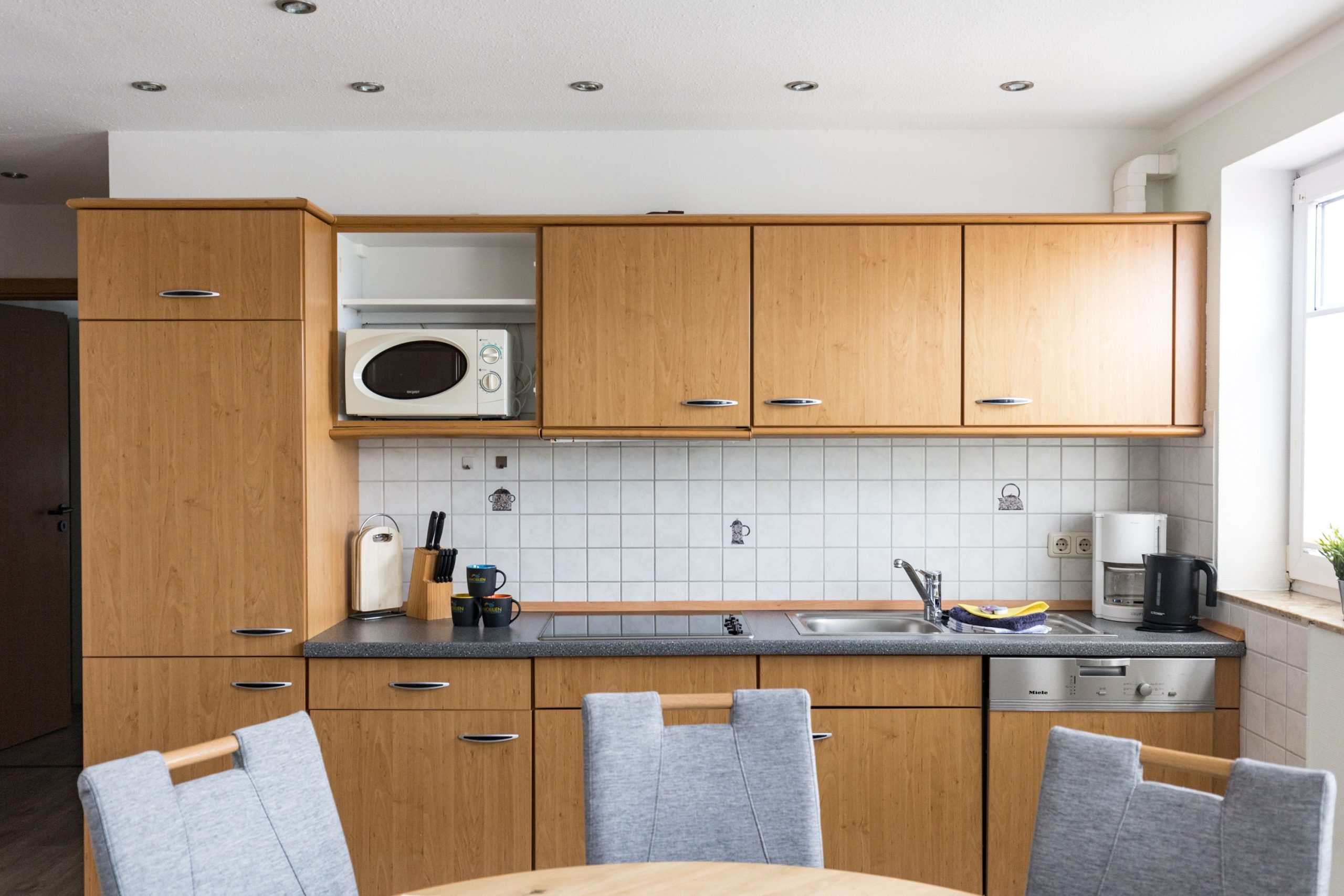 Die Wohnung bietet Platz für bis zu fünf Personen und ist ideal für Familien oder Gruppen. Drei komfortable Schlafzimmer laden zum Erholen ein, während die moderne Küche mit Spülmaschine, Mikrowelle, Kühlschrank und Kaffeemaschine perfekt für gemeinsame Mahlzeiten ausgestattet ist. Der Esstisch und die Sofaecke im Wohnzimmer sorgen für gemütliche Abende.